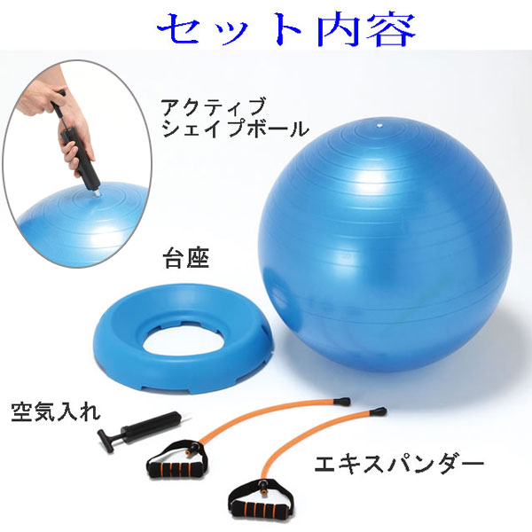 バランスボール●アクティブシェイプボール(台座・エキスパンダー付) バランスボール商品に新顔登場!台座が付いて安心、エキスパンダーも装備! ご家庭でらくらくシェイプアップ!ボールの弾みと転がりを利用したエクササイズボール。